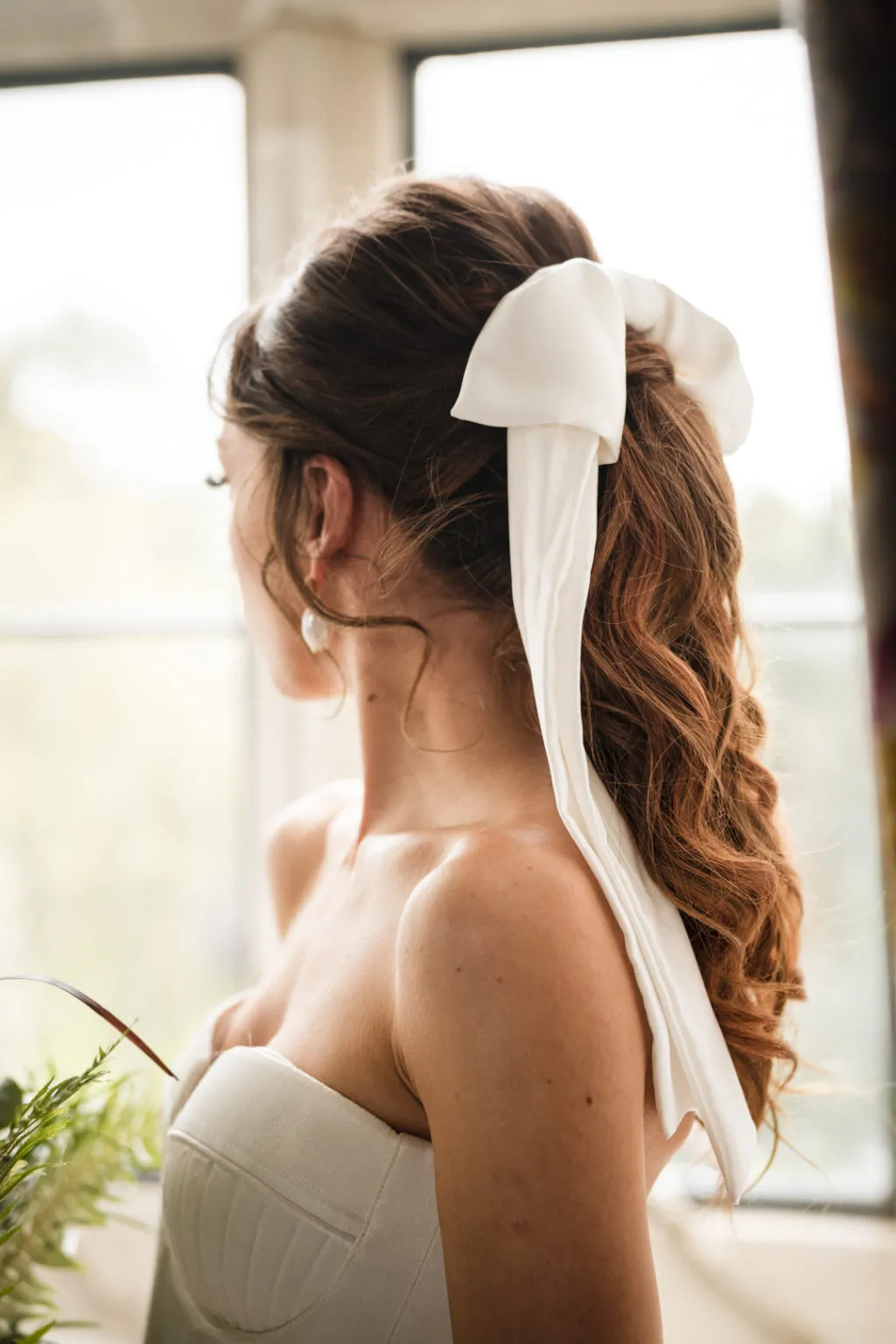 Embrace intricate romance through fishtail braids enhanced with ribbon weaving for stunning romantic braids wedding styles. This fall wedding hairstyles 2025 option showcases the fishtail braid’s complex weaving pattern while incorporating silk ribbons in autumn colors like burgundy, gold, or deep orange. The ribbon weaving adds color and texture while the fishtail braid provides sophisticated structure. This style works beautifully for brides who want to incorporate their wedding colors into their hairstyle while maintaining elegant sophistication.