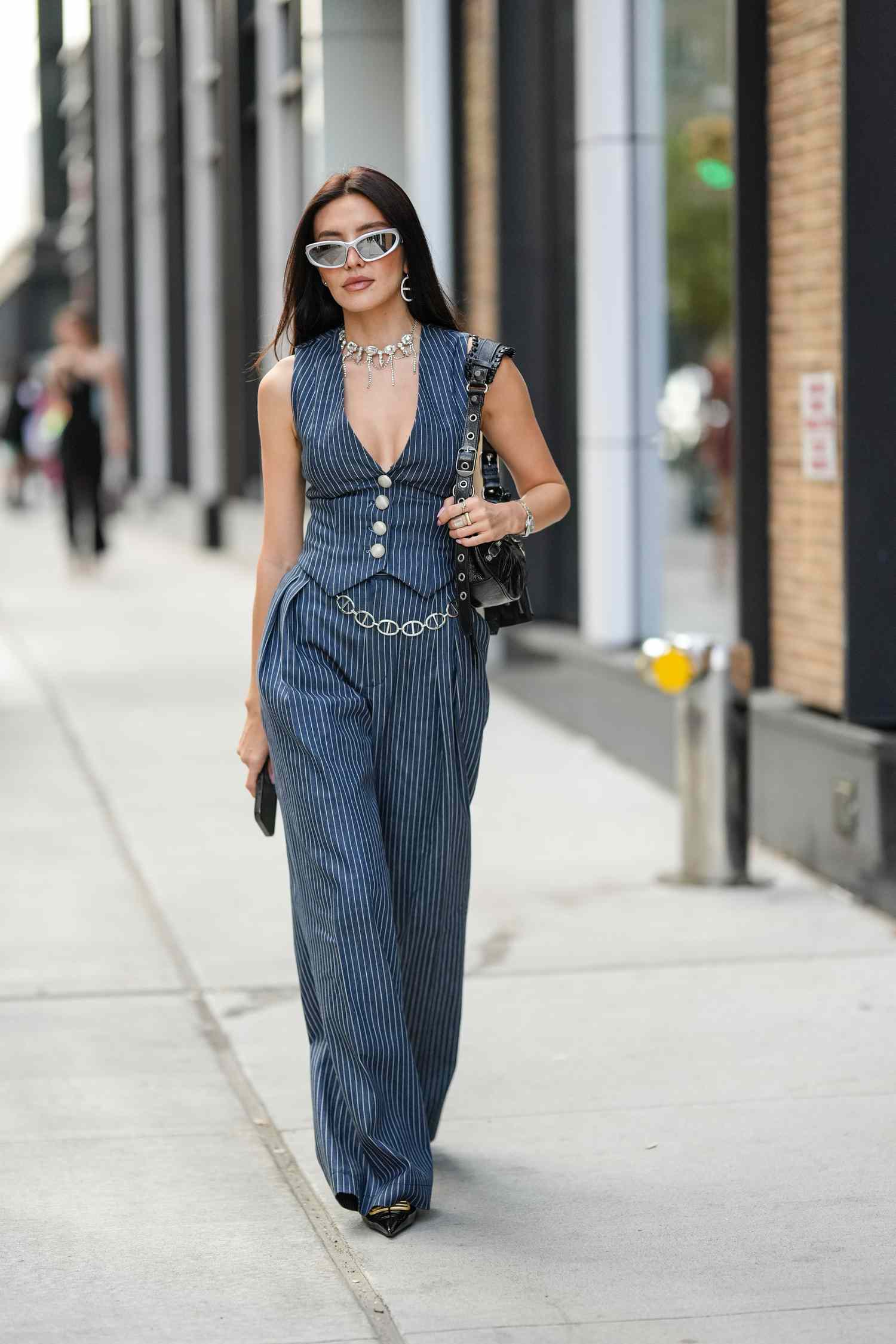 The matching vest-and-trousers set is the cool girl’s power suit. It’s structured but somehow still relaxed when paired with low-top sneakers or strappy sandals. Throw a long coat on top if it’s chilly, or wear it solo when the weather’s right.