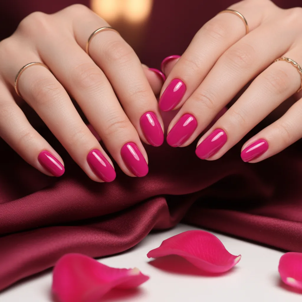 Magenta makes a powerful statement in fall 2025’s nail color lineup, offering a sophisticated alternative to traditional pink that feels appropriate for the season’s moodier aesthetic. This vibrant shade sits perfectly between purple and pink, capturing the richness of fall berries while maintaining a modern edge that feels fresh and contemporary. The intensity of magenta works particularly well on short nails, where the bold color creates impact without overwhelming the hand. Choose formulas with a cream finish for maximum color payoff, or opt for versions with subtle shimmer that add dimension without venturing into glitter territory.