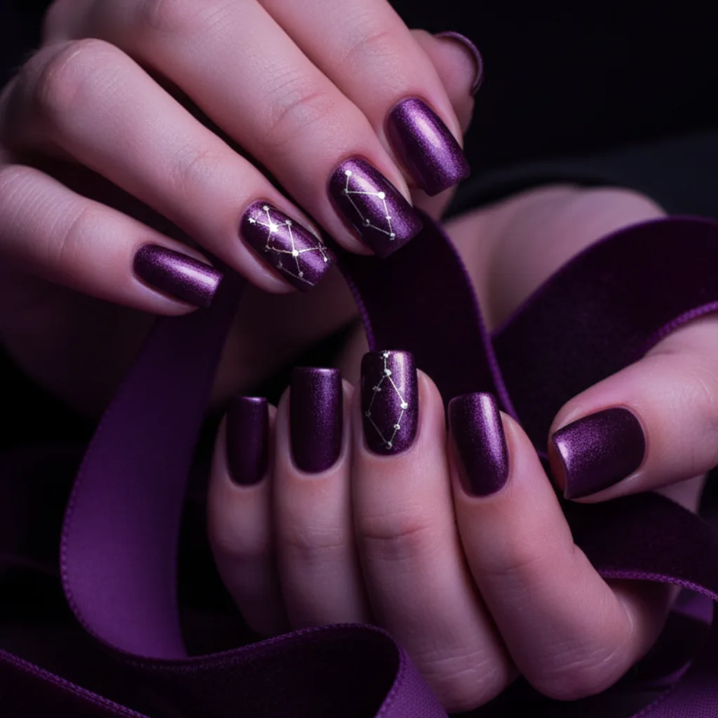 On short nails, blackberry purple creates an elegant, elongating effect that’s both dramatic and wearable. For almond nail designs, consider incorporating shimmer or metallic accents that enhance the color’s natural depth. Trending manicure ideas often feature blackberry purple in ombré designs that transition from near-black at the base to lighter purple at the tips, creating a gradient effect reminiscent of twilight skies. Another popular approach involves using blackberry purple as a base for constellation-inspired nail art, adding tiny silver or gold stars that pop against the dark background. This sophisticated shade proves that the best nail polish shades for fall can be both moody and magnificent.