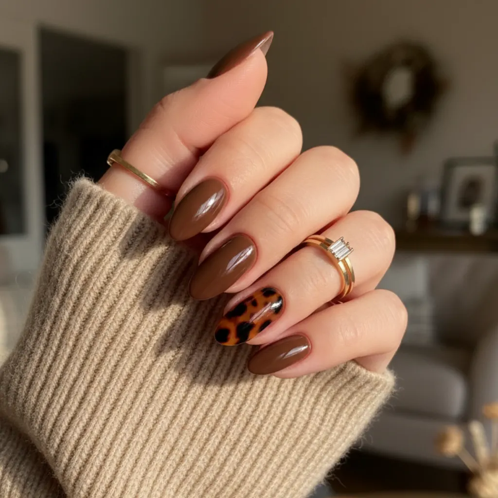 For almond nail designs, chocolate brown serves as an excellent base for exploring texture and finish variations. Try combining matte and glossy finishes on alternating nails for a modern take on the monochromatic manicure. Seasonal nail art featuring chocolate brown often incorporates metallic accents – thin gold stripes, copper dots, or bronze geometric shapes that enhance the warmth of the base color. Another trending approach involves creating a tortoiseshell effect by marbling chocolate brown with caramel and amber tones, resulting in a sophisticated pattern that captures fall’s natural beauty. This versatile shade proves that the best nail polish shades for fall don’t always have to be bold to make a statement.