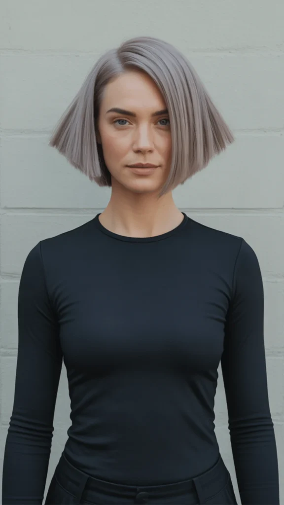 A flat iron is your primary styling tool here — smooth, even passes from root to tip will give you that polished finish. A heat protectant is essential; I rely on Kenra Platinum Blow-Dry Spray for both protection and smoothness. To maintain the silver tone, a violet or blue-tinted toner every four to six weeks keeps everything cool and prevents any yellow from creeping in. A silk pillowcase also helps reduce friction and keeps the bob looking sharp between washes.