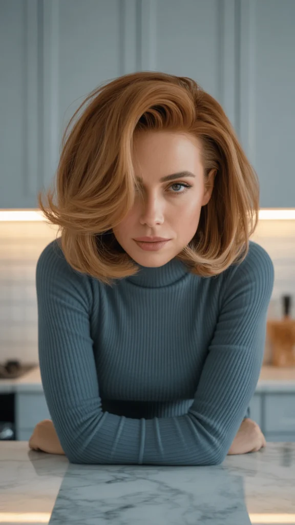 Now here’s a shade that turns heads. This rich copper-blonde has warmth for days — it’s the kind of color that looks like liquid amber when the light hits it. The voluminous blowout adds drama, with the ends flipping outward in a retro-inspired way that feels both nostalgic and completely modern. As a blonde hair color for spring 2026, this copper-infused shade represents the warm side of the spectrum in the most glamorous way possible.