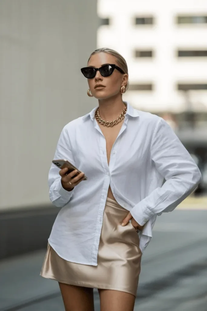 White Shirt and Satin Skirt Minimalism