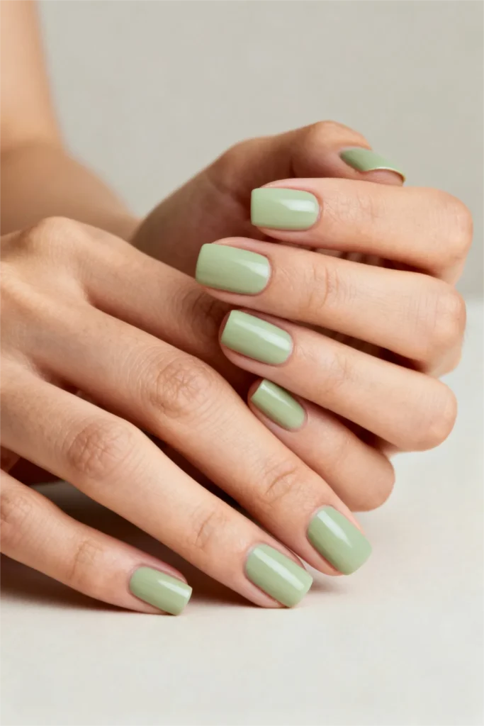 The glossy finish keeps it fresh and modern rather than dated. It works as spring and summer nail inspo aesthetic with its garden-herb energy, but the gray undertones make it equally perfect for autumn nail inspo aesthetic. It’s one of those simple nail inspo ideas that requires zero nail art but still looks current and intentional.