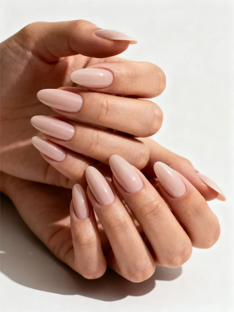 Sometimes the best nail look is the one that enhances what you already have. This soft blush pink is all about that “your nails but better” vibe – subtle, natural, and just really polished-looking. The almond shape is gently elongating without looking obviously fake or overdone.
