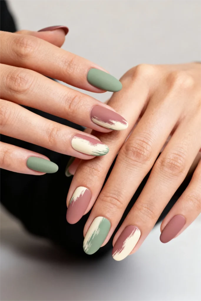 What makes this nail inspo aesthetic 2026 so appealing is the sophisticated color coordination. These aren’t random colors – they’re a carefully curated palette that works together like a capsule wardrobe. The abstract brushstrokes on select nails add interest without making it too busy, which is key to wearable nail art.