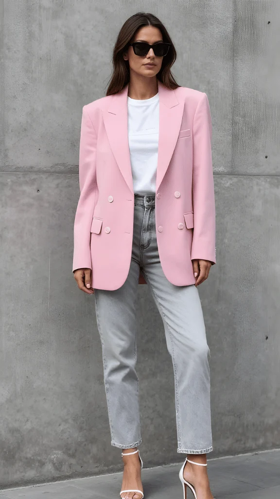 Soft Pink Blazer and Denim Elegance