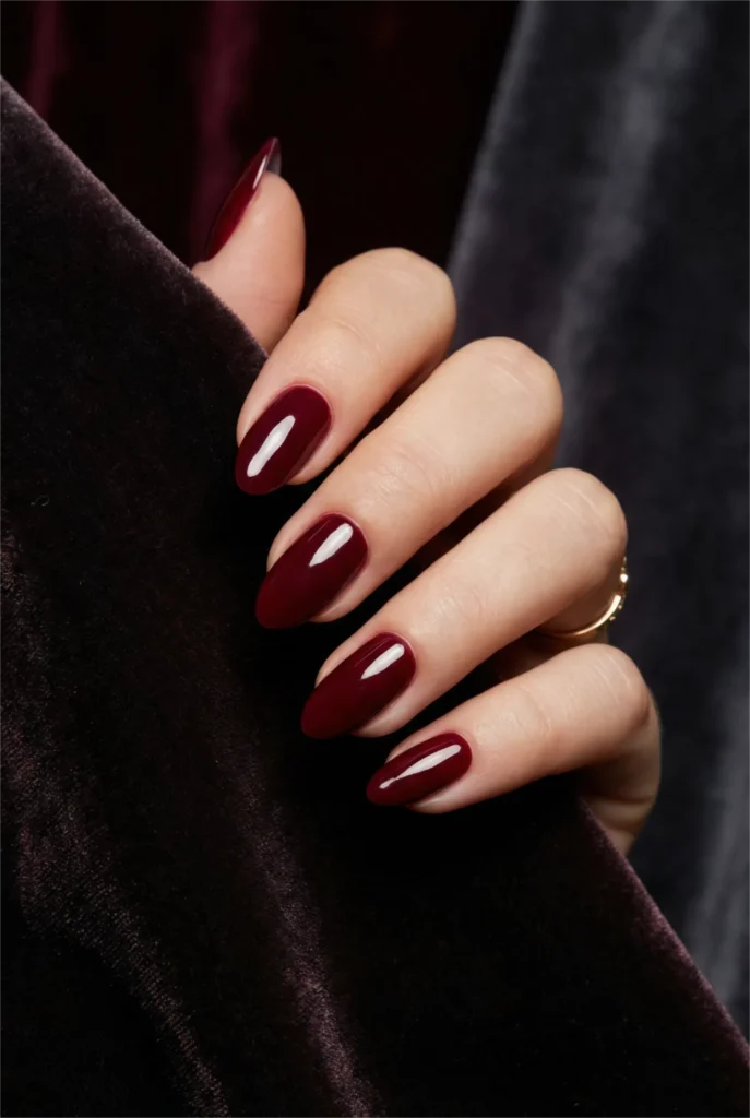 These chic nail designs demonstrate the enduring appeal of classic red manicures when executed with precision and restraint. The deep wine tone feels more mysterious and sophisticated than traditional bright reds, making it ideal for evening events, formal occasions, and anyone seeking a more understated take on red nails. This nail inspiration proves that minimalist nail designs can be bold and dramatic while still honoring the principles of simplicity and refined taste. The result is powerful yet elegant, modern yet timeless.