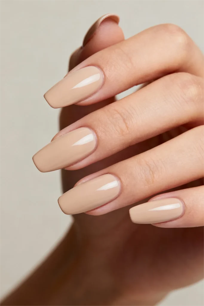 The warm nude tone works year-round but particularly shines as summer coffin nails 2026 when you want polished hands without heavy color. It’s the perfect base for experimenting with statement rings or intricate hand jewelry, as the neutral backdrop won’t compete for attention. This shade also tends to show less visible wear than darker colors, making it ideal for those with active lifestyles or longer stretches between manicures.