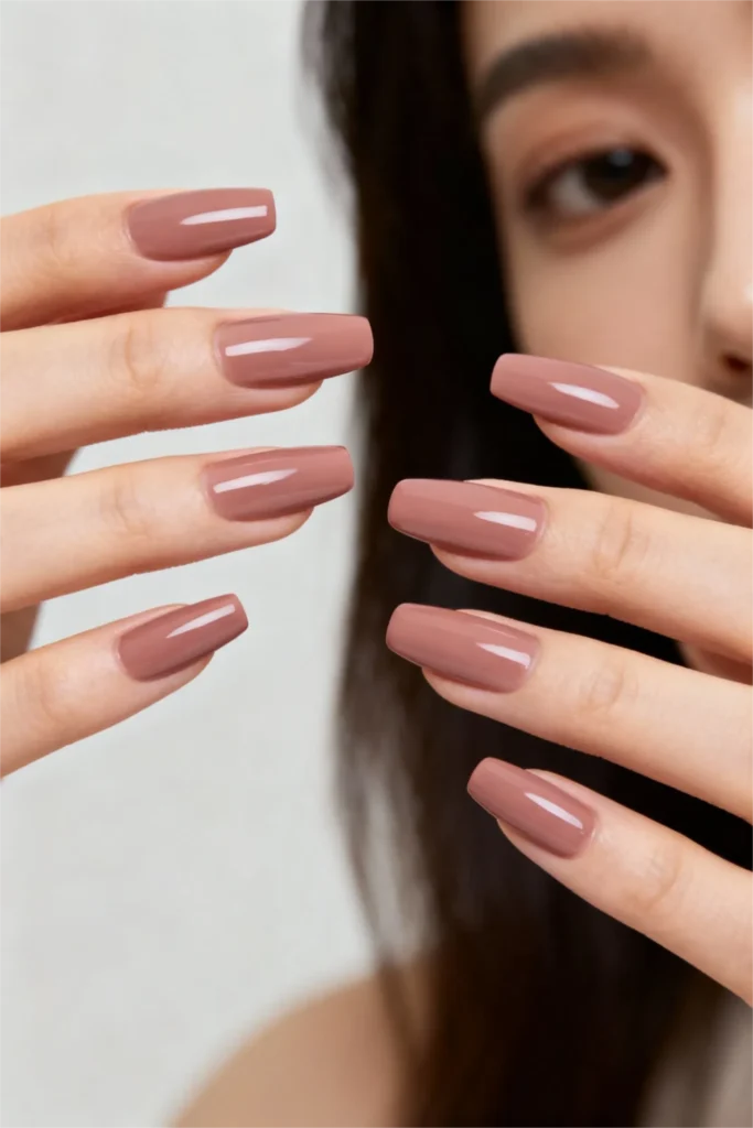 Dusty Rose Glossy Coffin Nails with Subtle Glamour