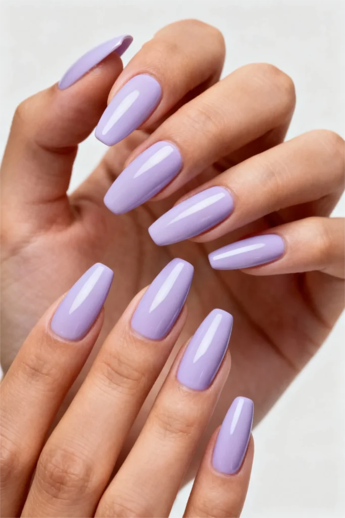 Style this with silver jewelry and cool-toned outfits for a cohesive color story, or contrast it with warm neutrals for an unexpected combination. The lavender shade is also incredibly flattering in photographs, making it a popular choice for special occasions, graduations, or any time you want soft, feminine nails that still make a statement. It’s sweet without being juvenile, making it accessible across all age groups.