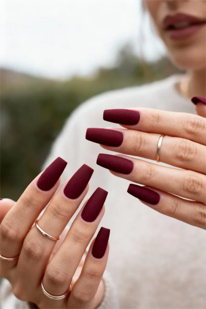 Deep Burgundy Matte Coffin Nails for Bold Statements
