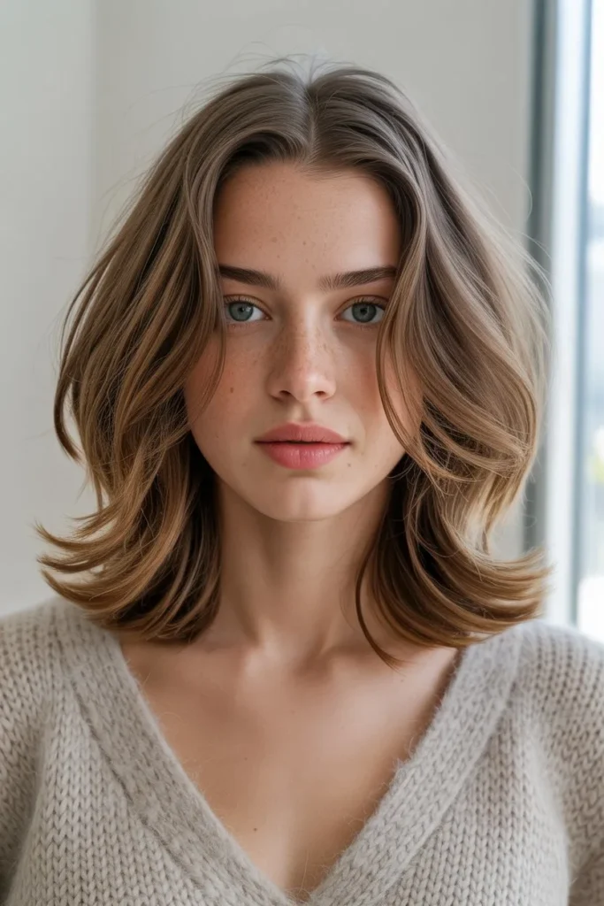 The tousled lob works beautifully across various hair textures and face shapes, with customization happening primarily through the specific cut and how it’s shaped to frame individual features. This hairstyle is particularly effective for busy women who want to look current and stylish without committing to extensive maintenance or daily styling requirements. The lob length is also incredibly versatile for creating different looks—it’s long enough to pull into a small bun or ponytail when needed, but short enough that wearing it down doesn’t feel overwhelming or high-maintenance. This style transitions seamlessly from casual daytime activities to evening social occasions, adapting to different contexts simply through changes in how you style and accessorize it. The tousled lob truly embodies modern hairstyling philosophy: beautiful, wearable, and refreshingly low-maintenance.