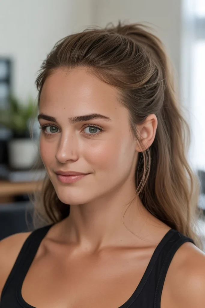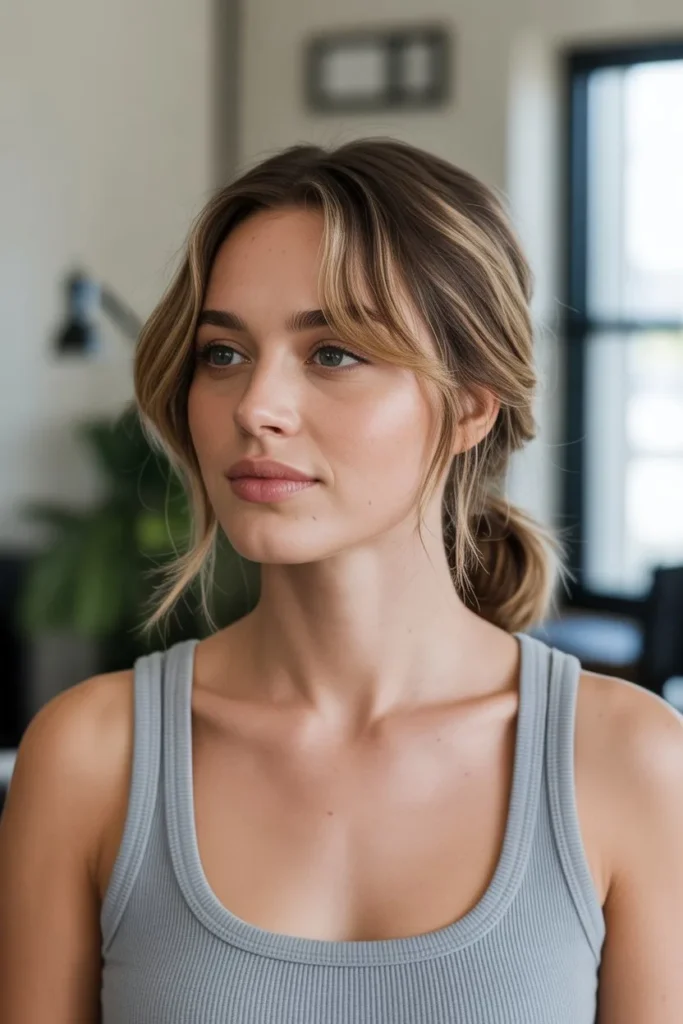 The face-framing low ponytail works beautifully across various contexts and occasions, from casual everyday activities to more polished professional or social settings. This style is particularly effective for women with round or square face shapes, as the loose pieces around the face create a softening, elongating effect that’s genuinely flattering. The low placement of the ponytail creates a more relaxed, approachable vibe compared to high ponytails, making it appropriate for situations where you want to look put-together without appearing overly formal or severe. This hairstyle also offers excellent versatility—you can wrap a section of hair from the ponytail around the elastic to conceal it for a more refined finish, add texture to the ponytail itself for visual interest, or keep everything smooth and sleek for a more polished appearance. The combination of functional hair-off-your-face security with soft, flattering loose pieces creates a balanced look that’s both practical and attractive.