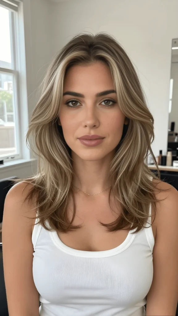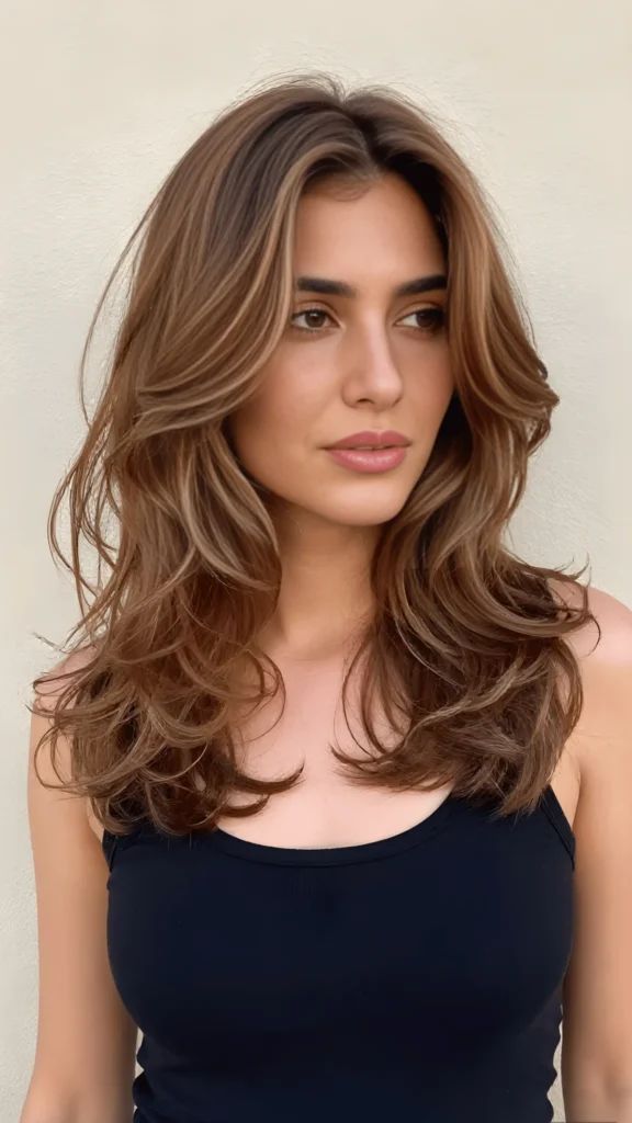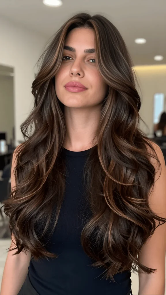 Warm Brunette with Long Layers and Soft Highlights