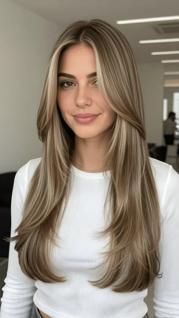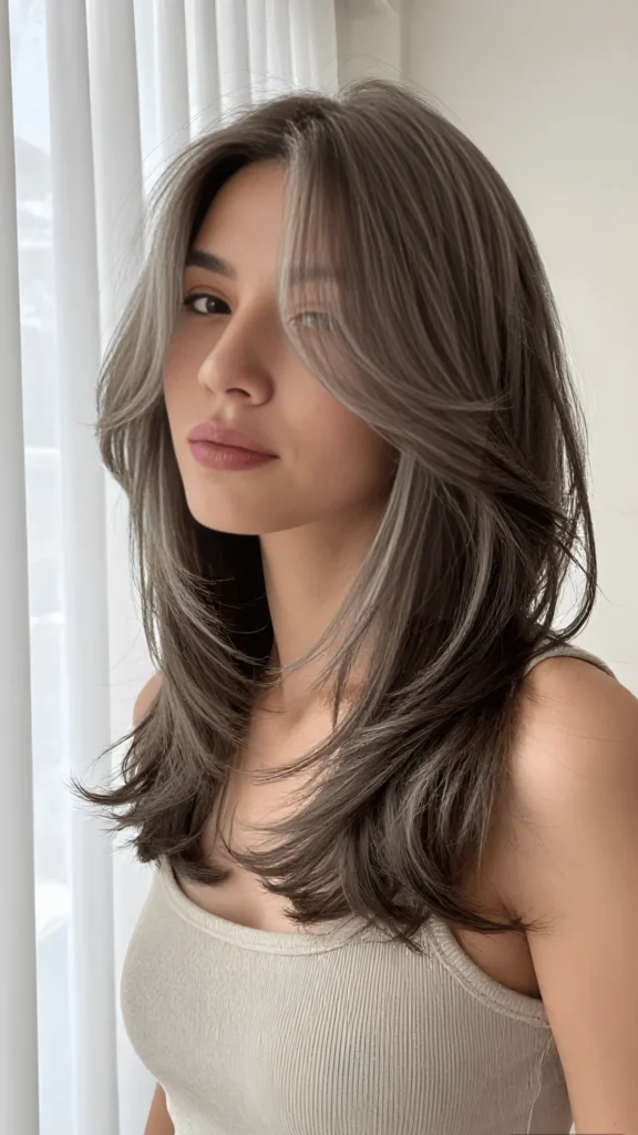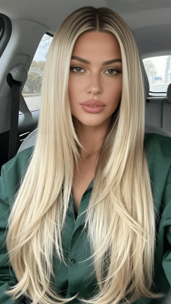 This icy platinum blonde is bold, bright, and so incredibly eye-catching. The color is almost white, with a cool-toned finish that feels really modern and high-fashion. The layers are long and sleek, falling in a straight, glossy curtain that’s just stunning. It’s one of those new spring hair trends 2026 that’s definitely a statement, and it’s perfect if you want a look that’s unforgettable.