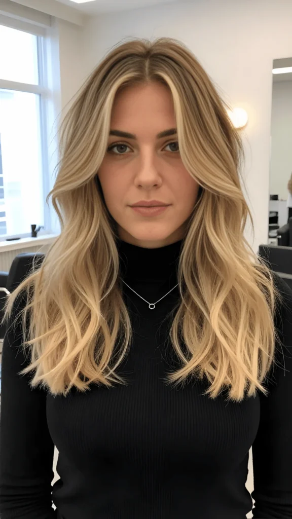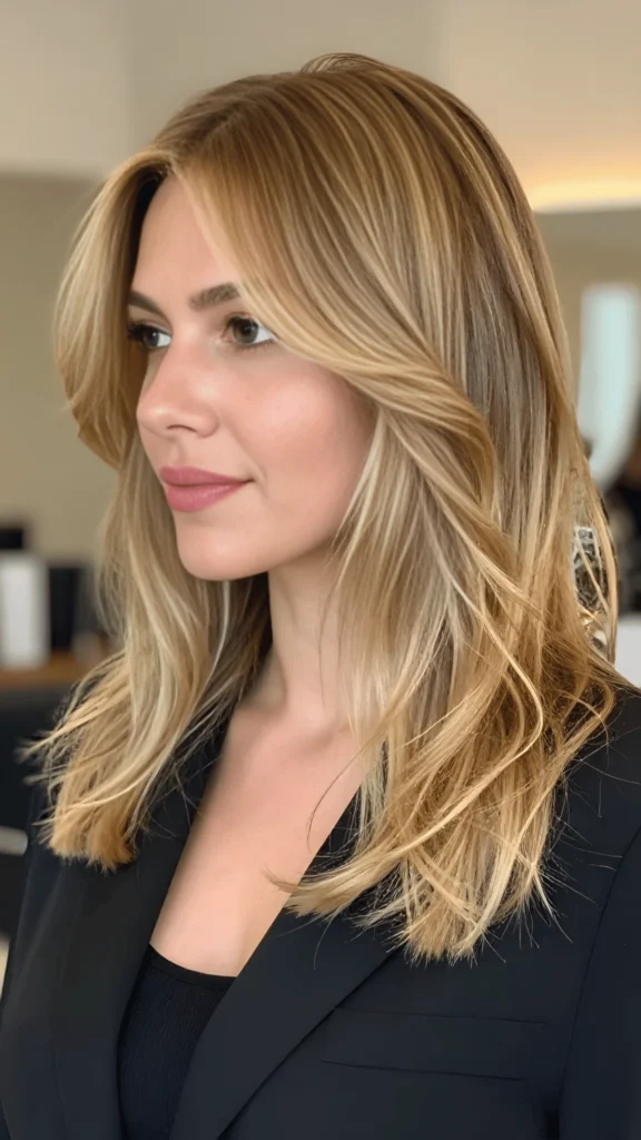 If you’re going for this, ask your colorist for a balayage with face-framing highlights and a rooty blend so it grows out beautifully. I always recommend using Redken Blonde Idol Shampoo to keep those tones bright without stripping your hair. A little Moroccanoil Treatment on damp ends before you blow-dry will give you that glossy, healthy finish that makes the color pop even more.