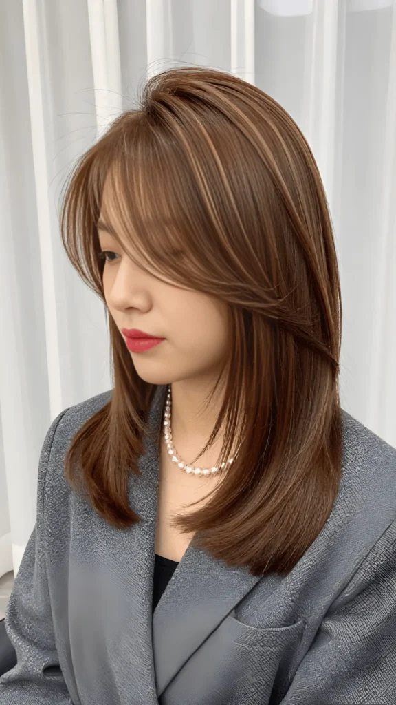 Warm Caramel Layers with Side-Swept Bangs