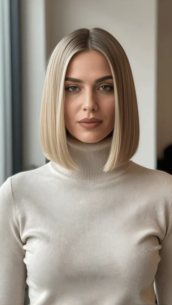 Sleek Platinum Blonde Bob with Center Part