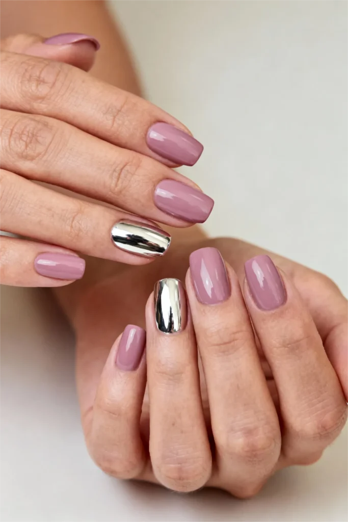 This color combination feels very 2026—there’s something slightly futuristic about the chrome paired with the soft, muted mauve. It’s modern without trying too hard. This is a great option if you want something that feels current and trendy but won’t look dated in three months. The mauve is timeless, the chrome is on-trend, and together they create something that feels both fresh and wearable.