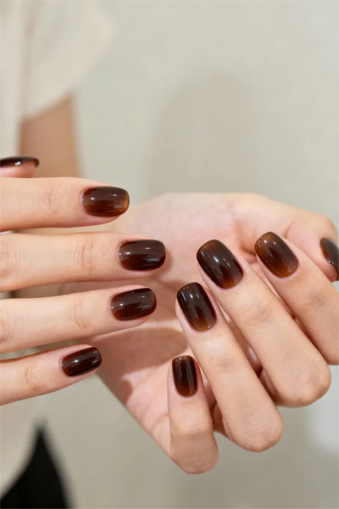 This shade also photographs beautifully, which is kind of a big deal in 2026 when we’re all documenting everything. Whether you’re holding a coffee cup or showing off a new ring, these glossy chocolate nails add that perfect finishing touch to your photos. They’re warm and inviting in a way that makes your whole aesthetic feel cohesive and thought-out, even if you literally just rolled out of bed.