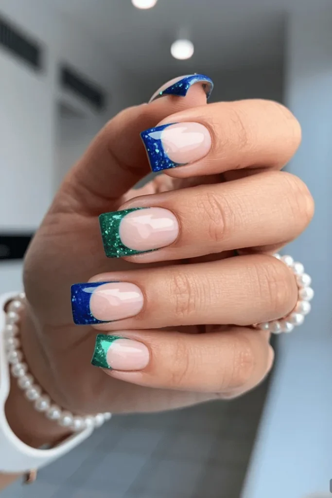 Festive Glitter French in Blue and Green