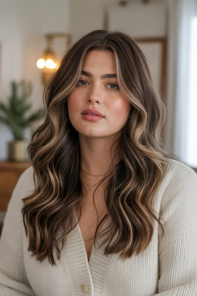 What’s particularly appealing about this style is its timeless elegance combined with modern coloring techniques. The balayage highlights add contemporary flair while the classic long layers remain forever flattering. This cut works beautifully whether worn straight, wavy, or curled, and it’s perfect for women who love the femininity and versatility of longer hair. It’s a sophisticated choice that makes you feel glamorous and confident every single day.