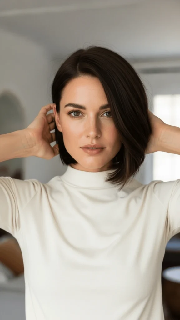 This bob demonstrates that sometimes the most powerful statement is made quietly. It’s hair that says you understand quality over quantity, precision over abundance. The cream turtleneck in this image reinforces that minimalist aesthetic perfectly.