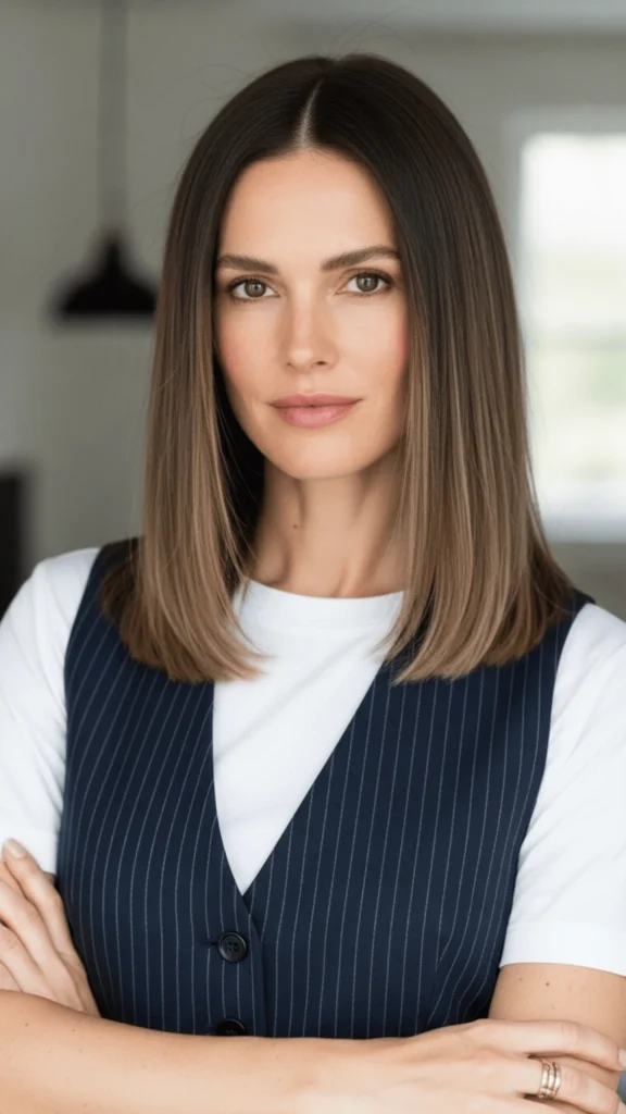 This lob proves that practicality and beauty coexist comfortably. It’s hair that works as hard as you do, transitioning from video calls to client dinners without requiring emergency salon visits or extensive restyling.