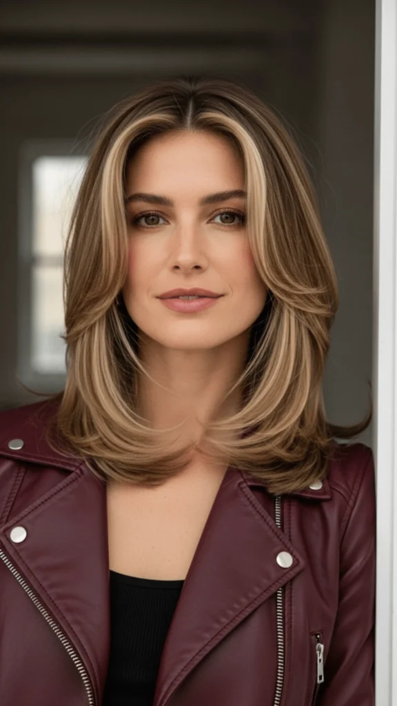 This style works because it balances sophistication with approachability. The burgundy jacket in the reference image shows how this hair color palette transitions beautifully into evening wear while remaining daytime appropriate.