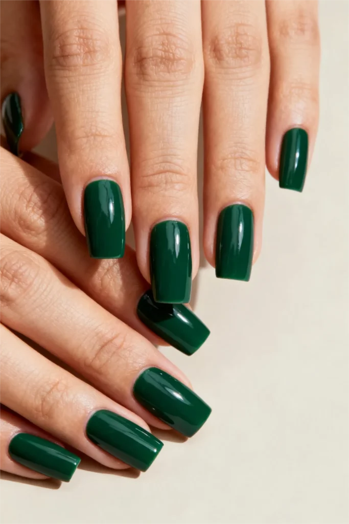 Emerald green is a power color. It’s luxurious, bold, and has this old-Hollywood glamour vibe that never goes out of style. Think jewel tones, velvet dresses, and vintage cocktail rings. This shade sits right in that sweet spot between blue-green and true green, and when you add a high-gloss finish, it looks like actual gemstones on your fingertips. It’s dramatic, yes, but in the best possible way.