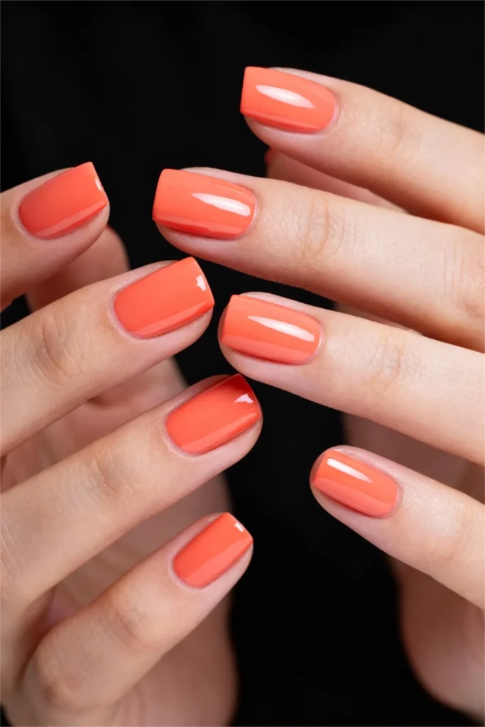 Glossy nails have this wet-look shine that makes your manicure look freshly done even days later. And coral, in particular, just glows when it’s glossy. The high-shine finish reflects light beautifully, so your nails catch attention every time you move your hands. It’s the kind of color that makes you want to gesture more when you talk. To hold your coffee cup a little longer. To admire your own hands while typing. It just feels good.