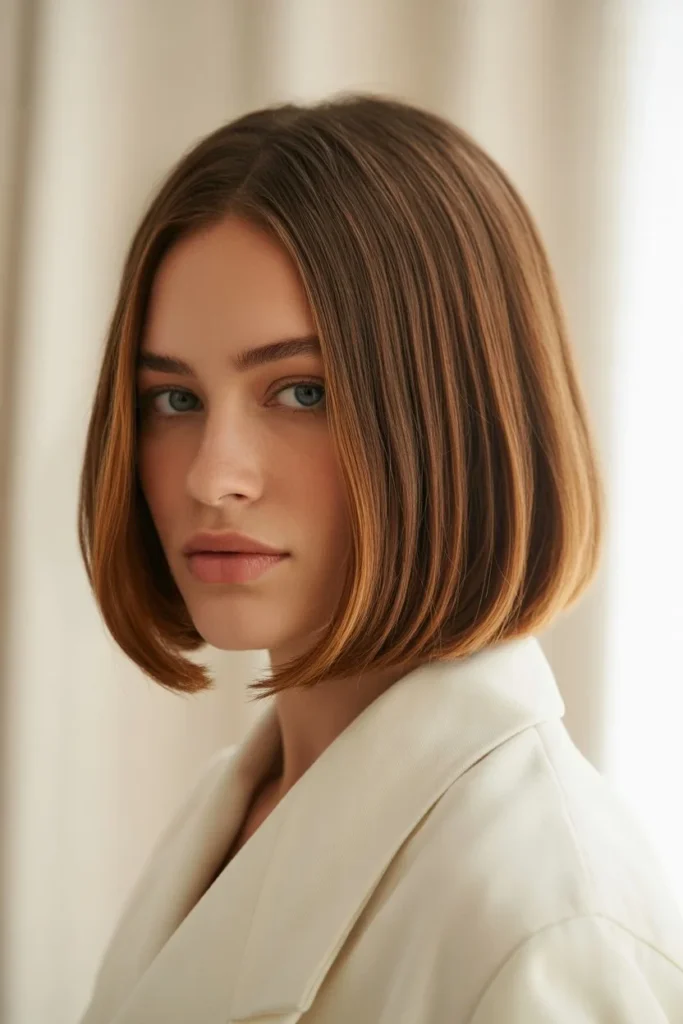 The Classic Center-Parted Bob with Warm Tones
