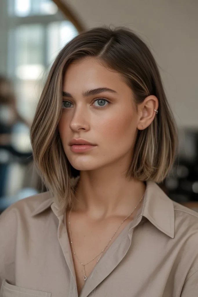The Sleek Angled Bob with Subtle Highlights