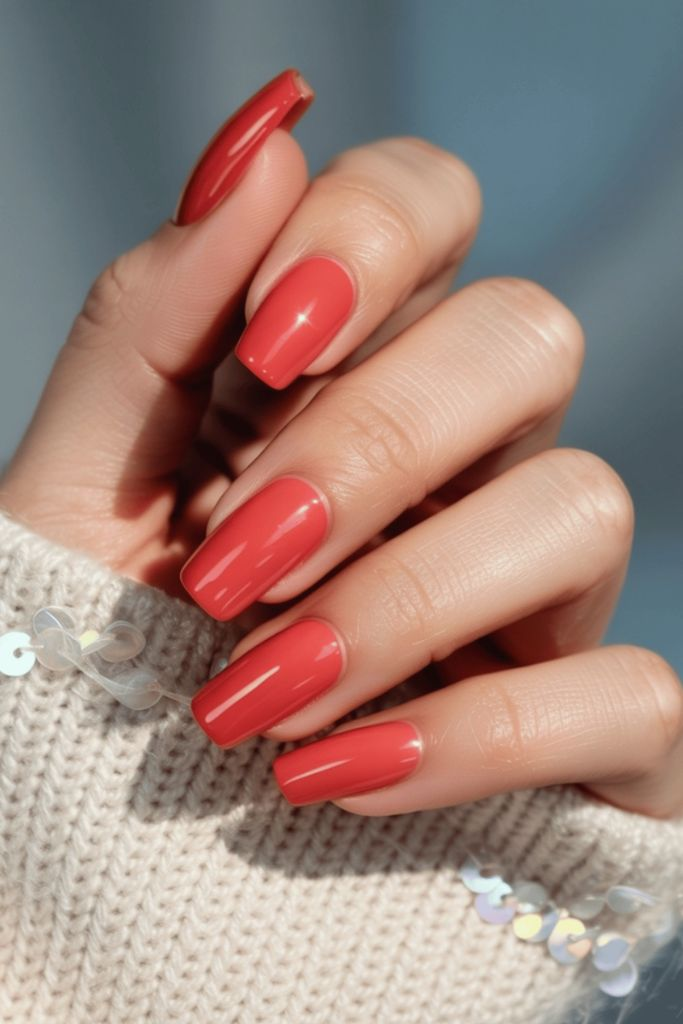 Coral is summer’s most reliable shade, and this glossy, medium-length version is proof of its enduring appeal. Not quite red, not quite orange, not quite pink — coral occupies its own category entirely, a color that manages to be warm and cool simultaneously. On square-shaped nails with a high-shine finish, this shade looks polished and refined, like something a European woman would wear while walking along the Amalfi Coast. It’s among the most versatile trendy summer nail colors you can choose this year.