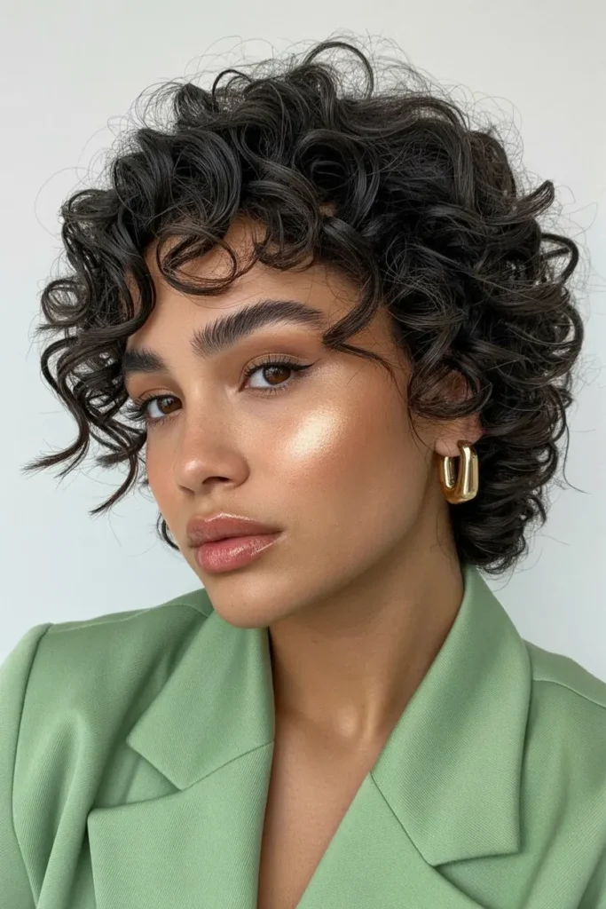 Sometimes the most beautiful styles are also the most classic, and this short curly cut proves that point perfectly. Cut to a length that falls somewhere between chin and shoulder, this style features beautifully defined curls that create a uniform, polished texture. It’s sophisticated, manageable, and works across age groups and personal styles, making it one of the most versatile curly hairstyles available.