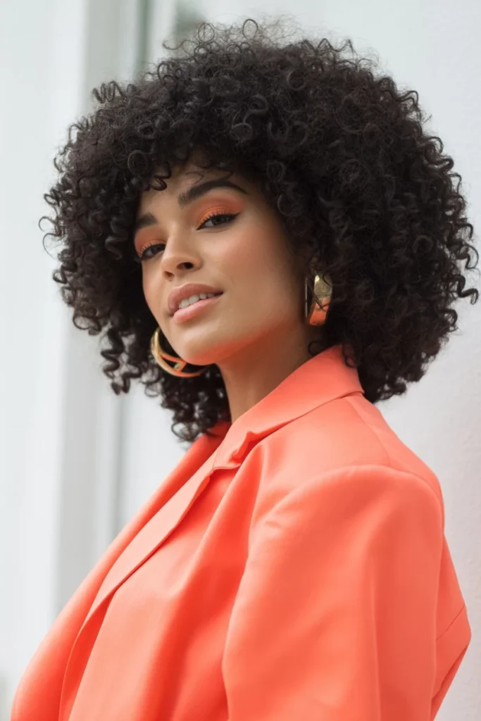 This style works particularly well for those with naturally tight, springy curl patterns that have plenty of inherent volume. Rather than trying to tame or control the volume, this style celebrates it, allowing each curl to take up space and contribute to the overall fullness. The result is hair that’s commanding and confident, making a statement without saying a word. The even curl pattern throughout creates a uniform texture that looks polished despite the substantial volume.