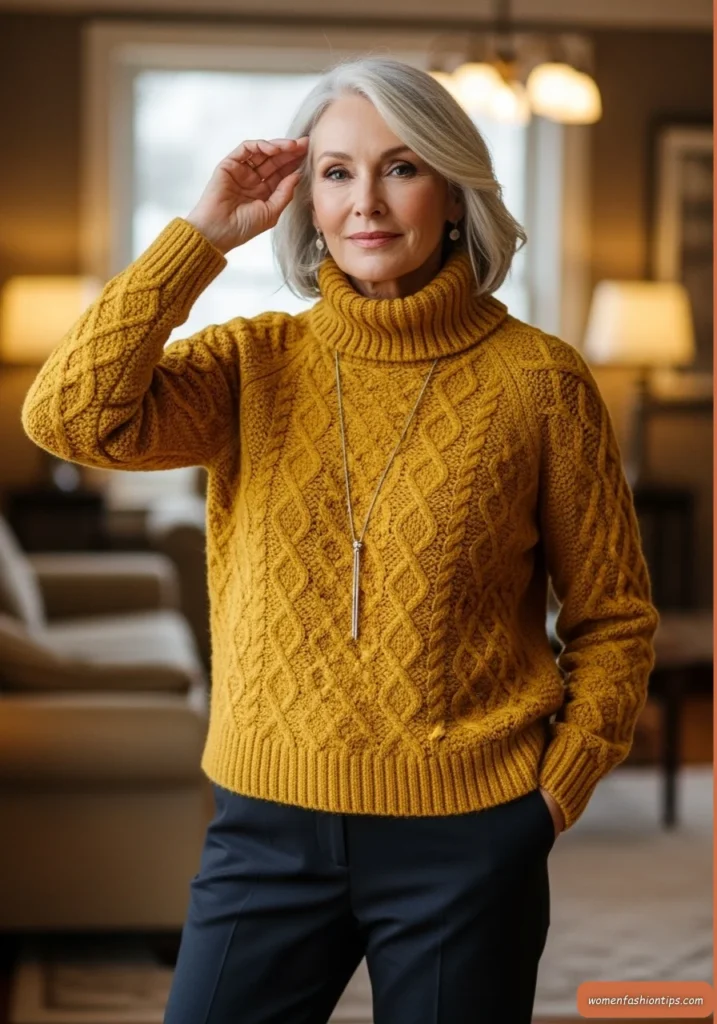 Gone are the days when mature women felt limited in their fashion choices. Today’s winter wardrobe for the over-50 woman is all about embracing confidence, celebrating individuality, and choosing pieces that make you feel both comfortable and stunning. From luxurious cashmere turtlenecks to statement coats that turn heads, this season’s must-have items focus on timeless elegance with contemporary flair. Whether you’re heading to the office, meeting friends for coffee, or enjoying a weekend stroll through the city, these outfit ideas will ensure you look polished and put-together.