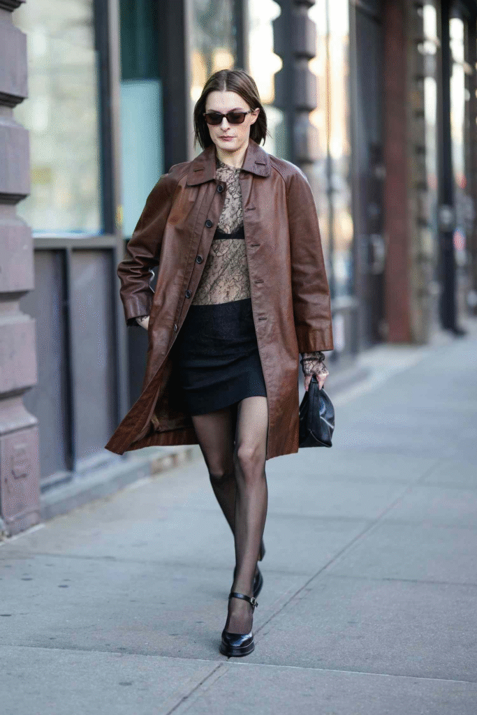 Trade black for brown this autumn—rich mocha, cognac, and espresso-hued leather jackets, skirts, and boots are stealing the spotlight. A brown leather blazer over a cozy knit top and matching skirt delivers instant warmth and city-chic vibes.