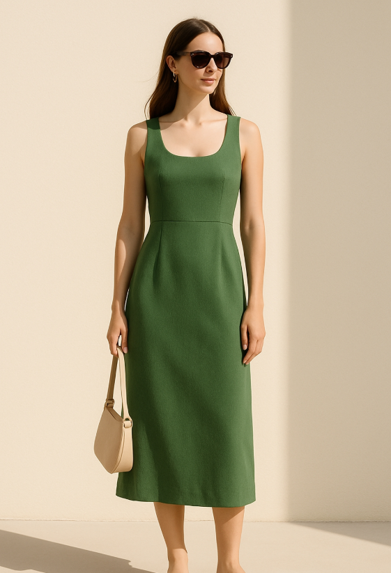 As summer quietly transitions to autumn, dill green sophistication leads the way. This refined, fresh hue—captured perfectly in a flawlessly tailored midi dress—proves that trend and timelessness need not be at odds. Paired with neutral accessories, it creates a look that is as easy as it is elevated, ready for any late summer day and all the moments that fill it.