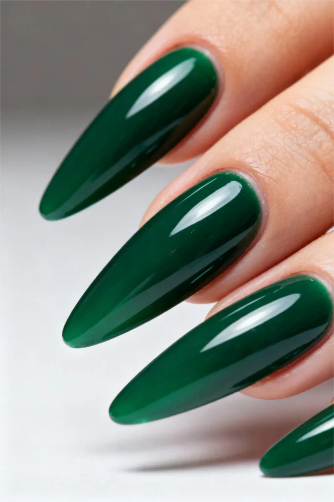 This shade of green sits somewhere between emerald and forest, creating a deep, saturated color that photographs beautifully. While it might initially seem like a seasonal color, this particular tone actually works year-round—feeling festive during holidays, fresh during spring, and edgy during other seasons. The long acrylic nails 2026 length allows the color to really shine, providing ample surface area for the rich tone to make its impact.
