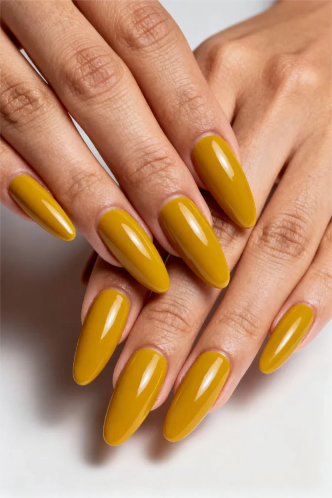 Yellow acrylic nails 2026 in this particular mustard tone work surprisingly well across multiple seasons. While it might initially seem like a summer color, the deeper, more saturated hue actually translates beautifully into autumn wardrobes as well. The glossy finish enhances the richness of the color, creating depth that prevents the yellow from appearing flat or one-dimensional.