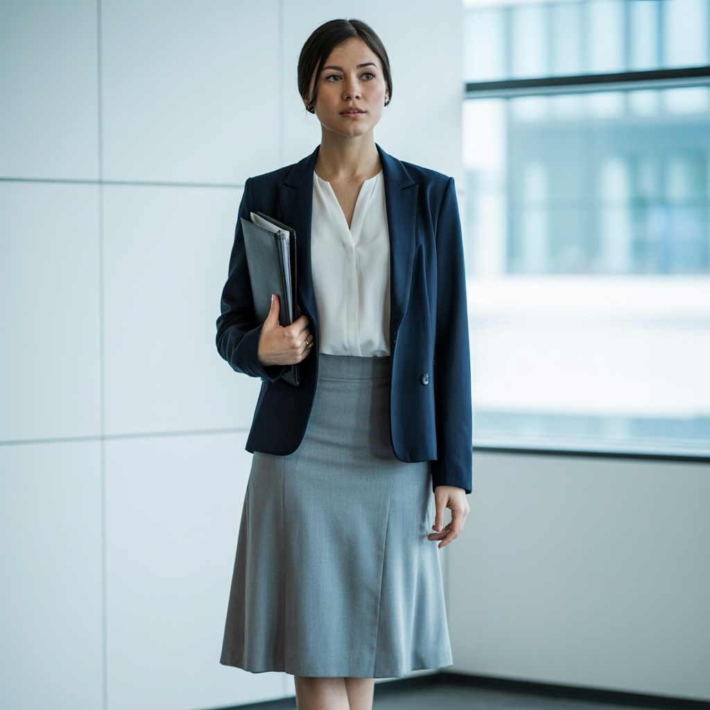A tailored midi skirt with a structured blouse creates a classic professional look. Choose a blouse with a higher neckline and sleeves. Add a blazer in a coordinating color. This outfit works for offices, client meetings, and professional events.