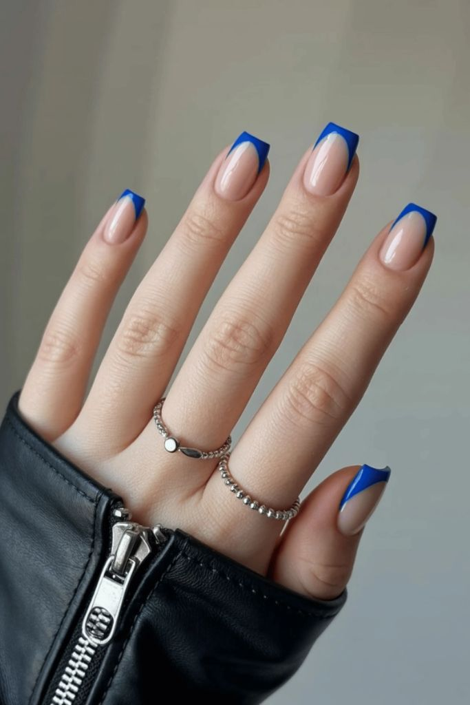 And honestly, this is one of those designs that photographs beautifully, looks incredible in person, and takes about twenty minutes to execute. If you want a statement French tip without any fuss, this cobalt square is your answer.
