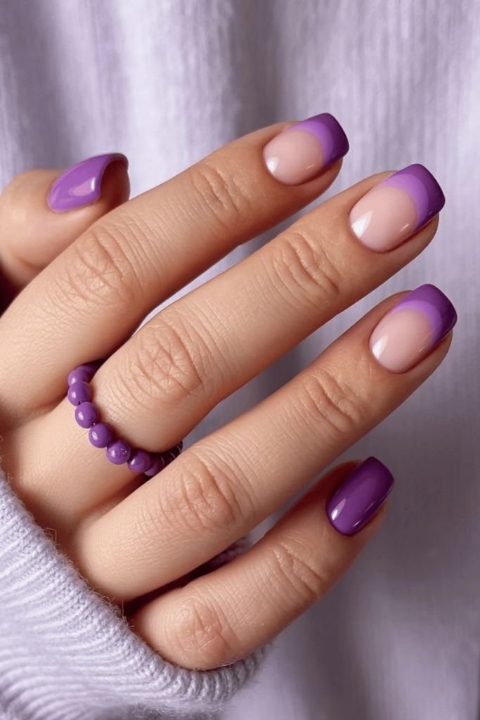 And honestly, the accent nail technique saves time and adds visual interest without requiring complex nail art skills. If you’re looking for short french tip nail ideas with personality, this purple situation delivers.
