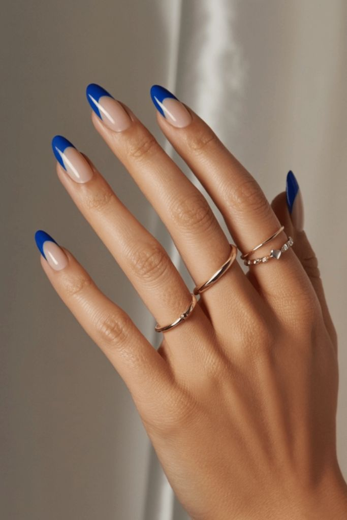 If you’re new to colored French tips and feeling overwhelmed by options, start here. This royal blue almond is your gateway design, and I promise you’ll fall in love with how it transforms your entire hand.