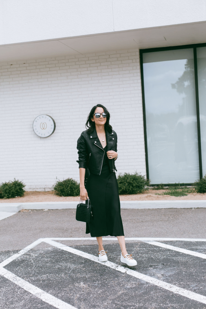 4. Slip Dress + Leather (or Faux) Moto + Sneakers