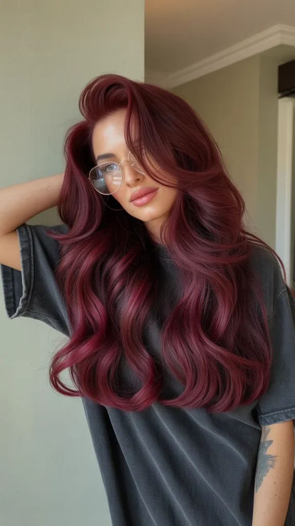 Celebrity colorist Tracey Cunningham has talked about the growing demand for what she calls “elevated reds” — shades that feel rich and intentional rather than costume-like. This burgundy fits perfectly into that category. It’s not Halloween red. It’s not fire-engine red. It’s the red you’d find in a glass of expensive wine or the lining of a designer coat.